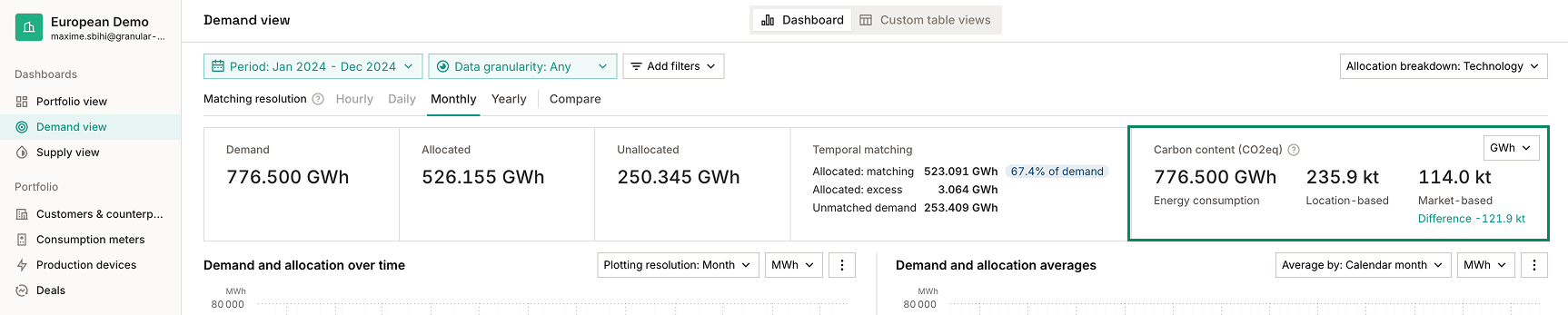 Granular Energy calculates emissions from both location-based and market-based approaches. You can find them displayed in the Consumer View dashboard or on the end-consumer reports generated in the platform.