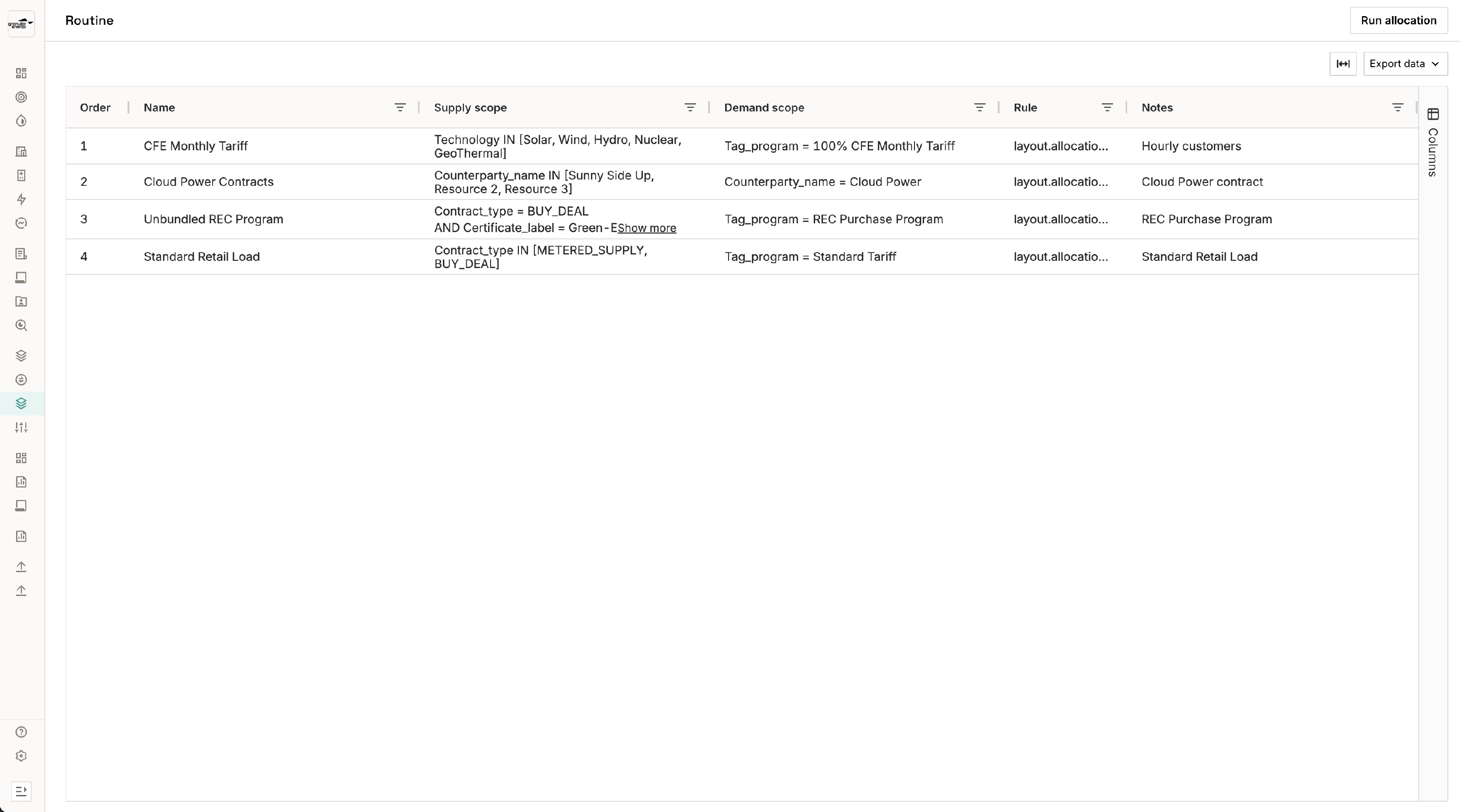 - The routine cannot be edited in the UI — if the allocation steps don't reflect your intended logic, contact your Granular onboarding team to update the configuration.